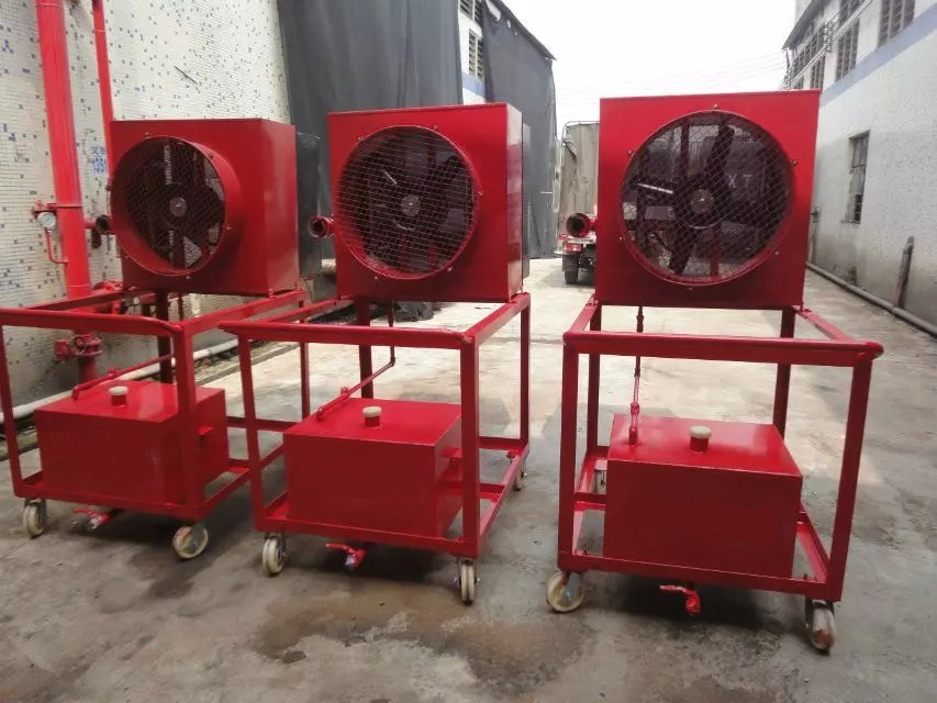 用消防车、消防艇或专用水泵供给0.3~1.0MPa的压力水一部分经主管道直接进入水轮机驱动水轮旋转并通过水轮机轴带动风轮转动。另一部分水流经比例混合器,在喷嘴处流速急剧增大,使真空室形成真空,储罐内的高倍数泡沫液由吸液管吸入比例混合器内,并与从喷嘴射出来的水混合,一起进入管道,再与从水轮机流出的水第二次混合,形成泡沫混合液,经喷水架管网通过喷头把泡沫混合液以雾状形式喷向发泡网,在网的内表面形成一层薄膜,由风轮吹到网上的风,吹胀成大量的气泡,构成为高倍数泡沫,淹没或覆盖燃烧物体的表面。阻断吸热辐射,冷却降温,隔绝稀释空气,覆盖窒息灭火。